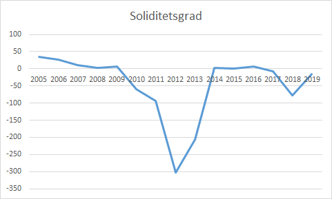 En soliditetgrad på 0 er også sjældent godt, da klubben har finansieret alle sine aktiver med fremmed kapital. Det gør gør klubben meget skrøbelig overfor økonomisk modgang, da der ikke skal meget til, før de ikke kan betale sine økonomiske forpligtelser.