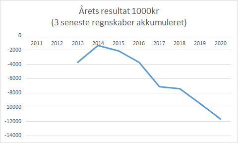 | Rød | Underskud på 6 mio (3,8 mio året før) Soliditet på -63 Lønandel meget høj af omsætning (95%) Gælden er større end aktiverne (163%) Egenkapital i minus 7,1 mio (fra -1,1 mio) |