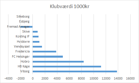 Silkeborg og Esbjerg er ikke vist herunder, da de de ligger markant over de øvrige klubber med 75 og 50 millioner.
