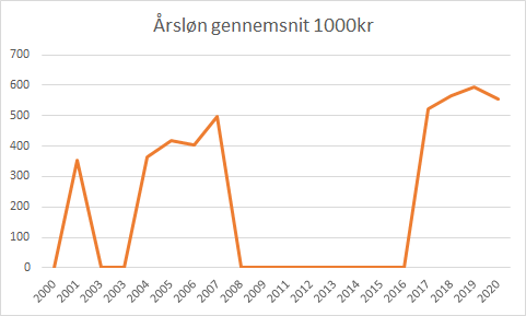 I de år hvor årsløn står som 0, skyldes det at klubben ikke har oplyst antal ansatte i klubben det enkelte år.