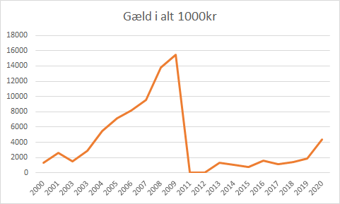 Gælden steg og steg frem mod konkursen hvor den endte på 15,5 mio. Efter konkursen, har gælden været på lavere niveau men i seneste regnskab er den steget noget.