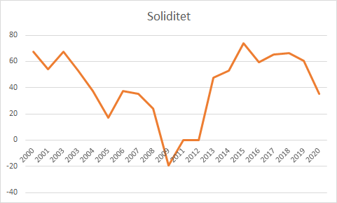 En soliditetgrad på 0 er også sjældent godt, da klubben har finansieret alle sine aktiver med fremmed kapital. Det gør gør klubben meget skrøbelig overfor økonomisk modgang, da der ikke skal meget til, før de ikke kan betale sine økonomiske forpligtelser.