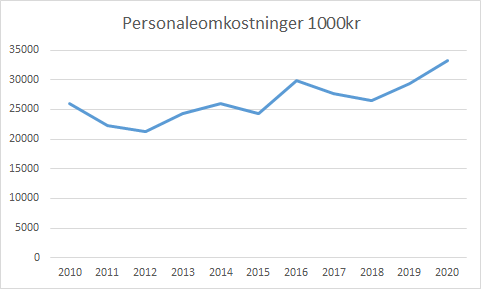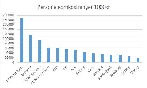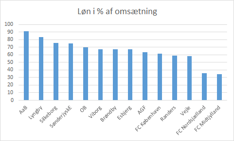 Dette er et udtryk for hvor SønderjydskE personaleomkostninger holdes op mod den klub det enkelte år, der har det største budget.