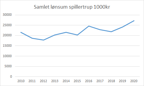I regnskaberne er der ikke udspecificeret hvor stor selve spillertruppens lønsum er, derfor er det et estimat med afsæt i de oplysninger der er tilgængelige i regnskaberne.