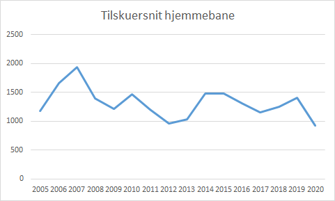 Tallet for 2020 er påvirket af covid19. Næstved har i mange år ikke kommet over 1500 tilskuere i snit.