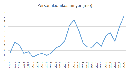 Dette er et udtryk for hvor Næstveds personaleomkostninger holdes op mod den klub det enkelte år, der har det største budget.