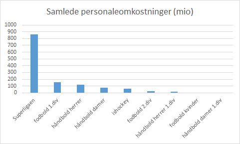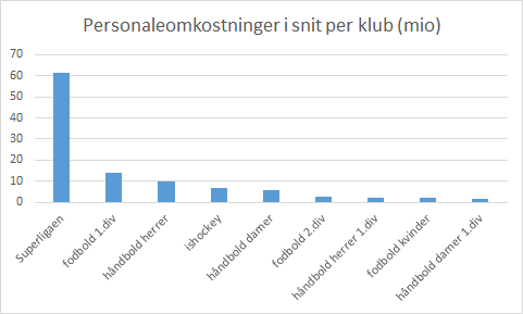 Forskellen på ligaen og 1.div på herresiden er en forskel på knap 5, så en ligaklub har i snit 5 gange så stor post på personaleomkostningerne.