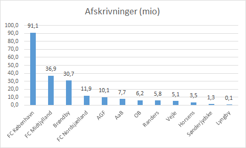 Hvor lønsummen ikke bliver oplyst i klubbernes regnskaber, så er afskrivningerne på spillertruppen meget ofte at finde i klubbernes regnskaber.