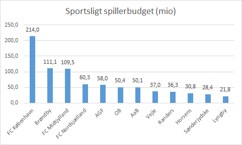 | Klub | Sportsligt spillerbudget (mio) | Tipsbladet (mio) | Forskel (mio) | Forskel % |