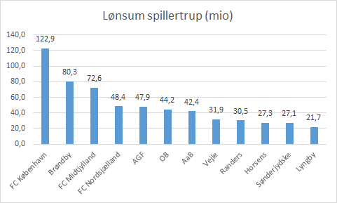 Hej Steen, jeg læser pt. en Master in Football Business på Johan Cruyff Institute i Barcelona. Vi arbejder en del med ‘wage bill’ begrebet som vel modsvarer det du kalder ‘spillertruppens lønsum’. Det er jo ikke eksakt videnskab, men i følge vores underviser (CFO fra forskellige europæiske klubber) forstår jeg, at ‘wage bill’ inkluderer løn og bonus til førsteholdstruppens spillere og trænere. Er du enige i det? Da vi laver diverse opgaver er jeg interesseret i at forstår lidt mere præcist hvordan du i februar sidste år kom frem til at FCK havde en ‘wage bill’ på 91,1 mio.