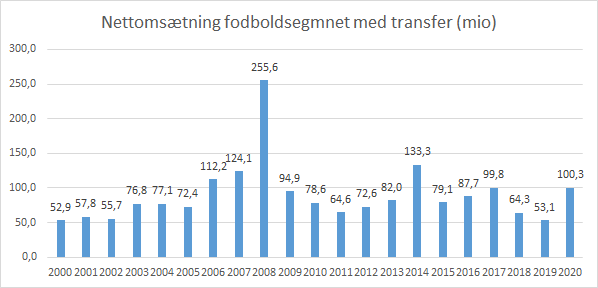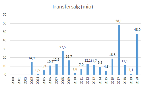 Da AaB samtidig har solgt spillere for 48 mio, så runder AaB 100 millioner i omsætning for første gang siden 2014.