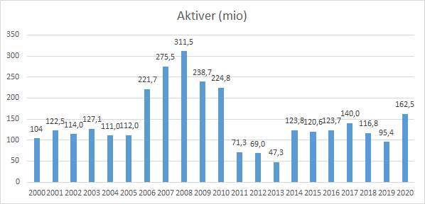 Frem mod 2010 har AaB andre segmenter, og dermed er aktiverne højere. Disse bliver afhændet og aktiverne falder naturligt.