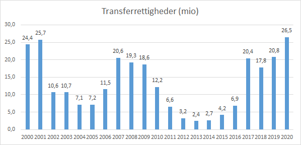 En klub kan opgøre transferrettighederne, eller det som også hedder immaterielle rettigheder forskelligt. Som udgangspunkt skal det forstås som den værdi klubben har lagt ind i truppen.