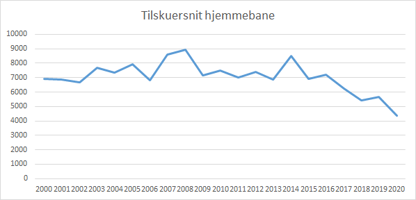 Tallet for 2020 er påvirket af covid19. Men AaB er inde i nedadgående kurve!