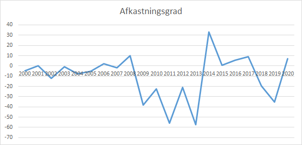 Afkastningsgrad = Resultat af primær drift / Gns. aktiver