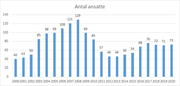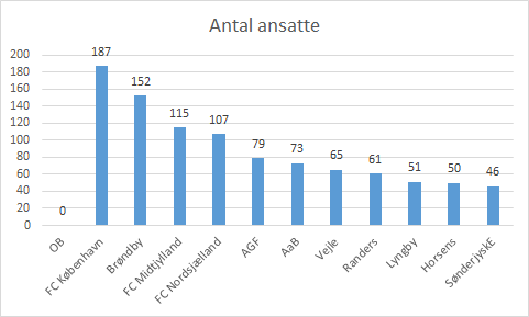 OB har ikke oplyst antal ansatte i deres fodboldsegment, men det samlede antal ansatte i deres koncern og de står derfor med nul herunder.
