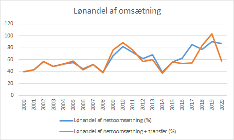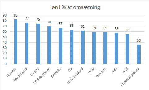 UEFAs anbefaling i forhold til Financial Fair Play er at en klub skal ligge på max 70%. Herunder er lønandel vist både af nettoomsætning (uden transfer) og med transfer.