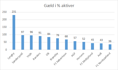 FC Købehavn har den største gæld, men det som er interessant at se på, er i forhold til klubbens aktiver (værdier). Hvis gælden overstiger aktiverne kan det være en udfordring.