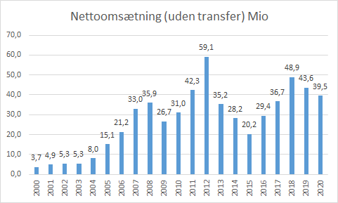 Her skal der skelnes mellem nettoomsætning samt omsætning med andre driftsindtægter såsom transfer.
