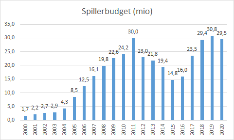 Dette er lønsum spillertrup + afskrivninger spillertrup. Lønsummen for spillertrup er ikke oplyst og er derfor et estimat baseret på de oplysninger der er i regnskab i forhold til antal kontraktansatte mm.