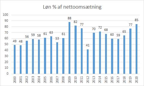 Lønnen er taget i procent af nettoomsætning, dvs uden transfer.