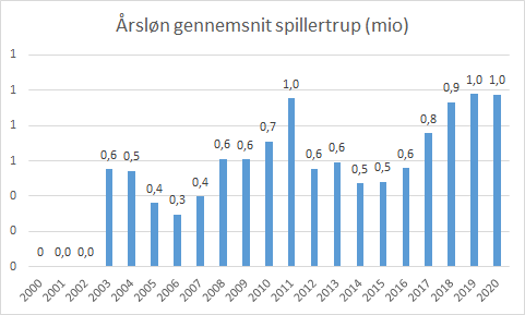 Hvad er den samlede lønsum til spillertruppen. Dette er ikke oplyst specifikt i regnskabet og derfor et estimat.