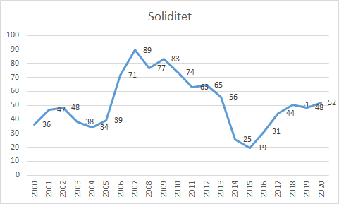 En soliditetgrad på 0 er også sjældent godt, da klubben har finansieret alle sine aktiver med fremmed kapital. Det gør gør klubben meget skrøbelig overfor økonomisk modgang, da der ikke skal meget til, før de ikke kan betale sine økonomiske forpligtelser.