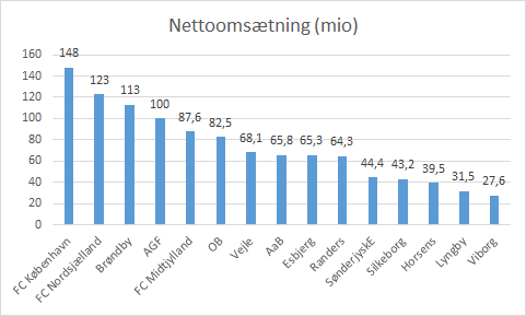 Ses der først på selve nettoomsætningen ser det således ud, udfordringen er måden at klubberne opgør deres regnskaber, hvor nogle klubber har alle indtægter med i klubbens nettoomsætning, mens andre har oplyst transferindtægter separat.