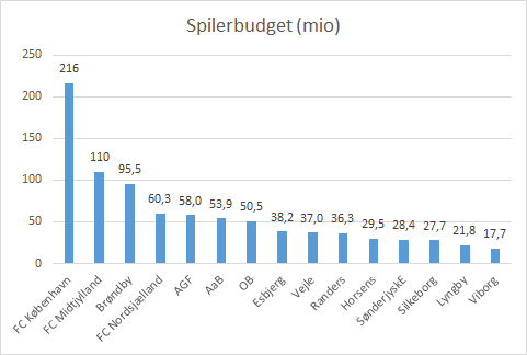 Horsens er udfordret, en 10.plads er det som vil undgå en nedrykning for Superligaen, som der er nu, er det Randers der er rangeret som nummer 10 med 64,3 mio. Horsens ligger små 25 mio under!