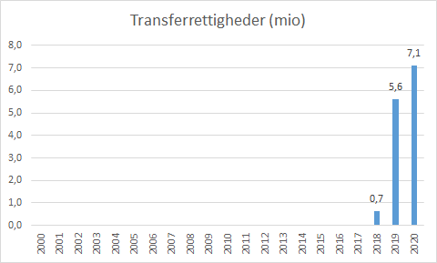 Bliver en spiller købt eller solgt for 18 mio på en treårig kontrakt, så kan det være en aftale hvor betalinger sker i rater, således at de 18 mio ikke optræder i det enkelte regnskab, men 6 mio spredt over 3 regnskaber. Nedenstående er således en oversigt over transferbeløb der kommer ind og ud i det enkelte regnskab.