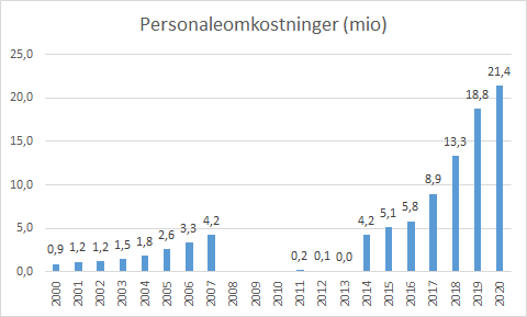 Dette dækker over alle ansatte i klubben. De år hvor der ikke er data skyldes dette ikke er oplyst i regnskabet.