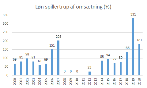 Dette dækker over hvor stor lønsummen er til spillertruppen samt afskrivninger på denne.
