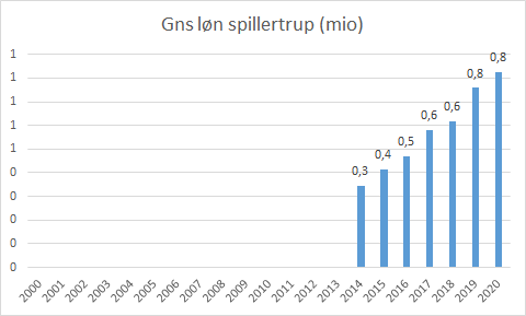 Hvad er den samlede lønsum til spillertruppen. Dette er ikke oplyst specifikt i regnskabet og derfor et estimat.