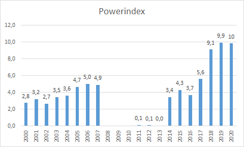 Dette er et udtryk for hvor klubbens personaleomkostninger holdes op mod den klub det enkelte år, der har det største budget.