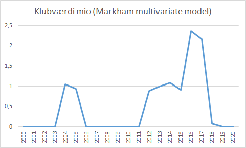 Metoden der benyttes er Markham multivariate model, hvor en række forskellige parameter er brugt. Med corona bliver klubber hårdt ramt, specielt de som har et regnskab der følger kalenderåret, i det de klubber har 9 måneder med corona.