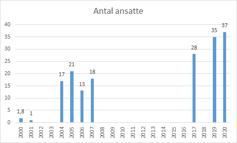 Dette dækker over alle ansatte i klubben. De år hvor der ikke er data skyldes dette ikke er oplyst i regnskabet.