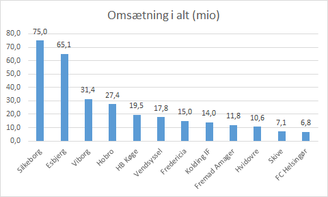 Ses der først på selve nettoomsætningen ser det således ud, udfordringen er måden at klubberne opgør deres regnskaber, hvor nogle klubber har alle indtægter med i klubbens nettoomsætning, mens andre har oplyst transferindtægter separat.