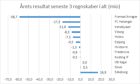 Note: Der er nogle usikkerheder i sammenligningen på tværs af regnskaber, i det nogle regnskaber løber fra sommer til sommer og andre følger kalenderåret. Dermed vil de regnskaber der følger kalenderåret have et regnskab med 9 måneder, mens de klubber der har et regnskab der går fra sommer til sommer har 3 måneder med corona.