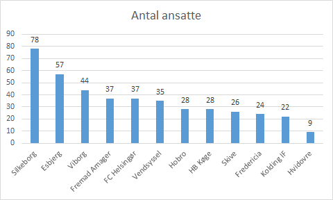 Silkeborg har ikke oplyst antal ansatte i deres fodboldsegment, men det samlede antal ansatte i deres koncern og de står derfor med nul herunder.