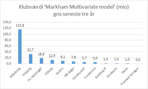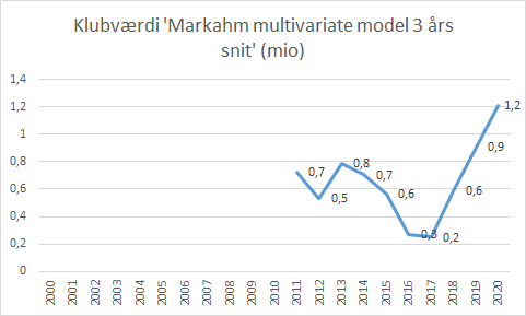 Metoden der benyttes er Markham multivariate model, hvor en række forskellige parameter er brugt. Med corona bliver klubber hårdt ramt, specielt de som har et regnskab der følger kalenderåret, i det de klubber har 9 måneder med corona.
