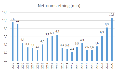 | Seneste 5 år | -3,1 mio |