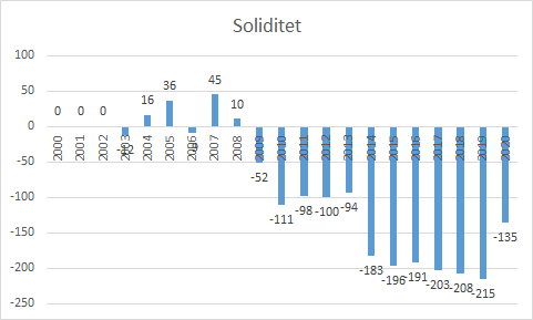 En soliditetgrad på 0 er også sjældent godt, da klubben har finansieret alle sine aktiver med fremmed kapital. Det gør gør klubben meget skrøbelig overfor økonomisk modgang, da der ikke skal meget til, før de ikke kan betale sine økonomiske forpligtelser.