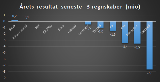 Tabellen herunder dækker over klubbernes seneste tre regnskaber