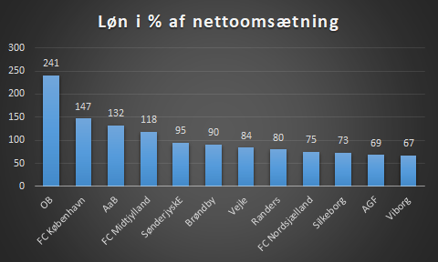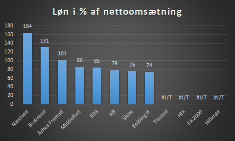 Procentsatserne kan virke høje, men da klubbernes omsætning typisk ikke er store, så giver det disse tal. Har en klub et lønbudget på 1,3 mio og omsætning på 1 mio, så er klubben på 130% hvilket er meget, men dog blot 300.000kr mere end den tjener.
