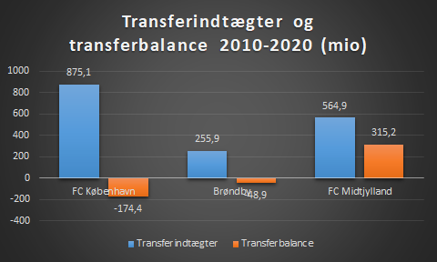 Men hvordan ser det ud for FC København, for et er selve klubbens transferindtægter der kan være store, og det er de efter dansk standard, men hvad med transferbalancen?