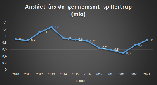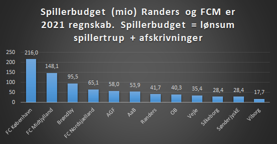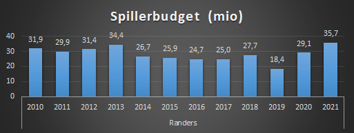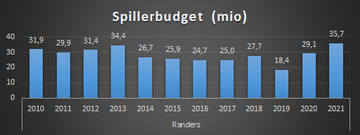 Randers er rangeret som nummer 7 set på spillerbudget, om end når de øvrige klubbers regnskaber kommer, kan det ændre sig en smule. Men Randers er LANGT fra top 3, så klubben befinder sig som udgangspunkt som midterhold.