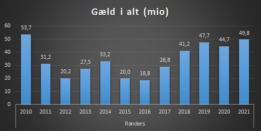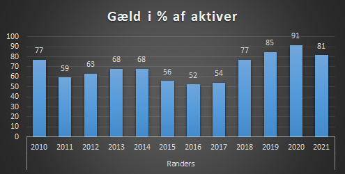 | Gul | Gæld i forhold til aktiver (81%) Gælden er steget med med 5 mio til 49,7 mio |