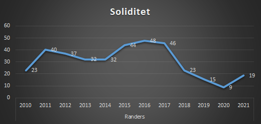 En soliditetgrad på 0 er også sjældent godt, da klubben har finansieret alle sine aktiver med fremmed kapital. Det gør gør klubben meget skrøbelig overfor økonomisk modgang, da der ikke skal meget til, før de ikke kan betale sine økonomiske forpligtelser.