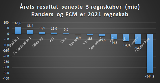 Det interessante er at Randers over de tre seneste regnskaber næsten er i balance, med et samlet tab på 0,9 mio, det er godt lederskab af klubben.