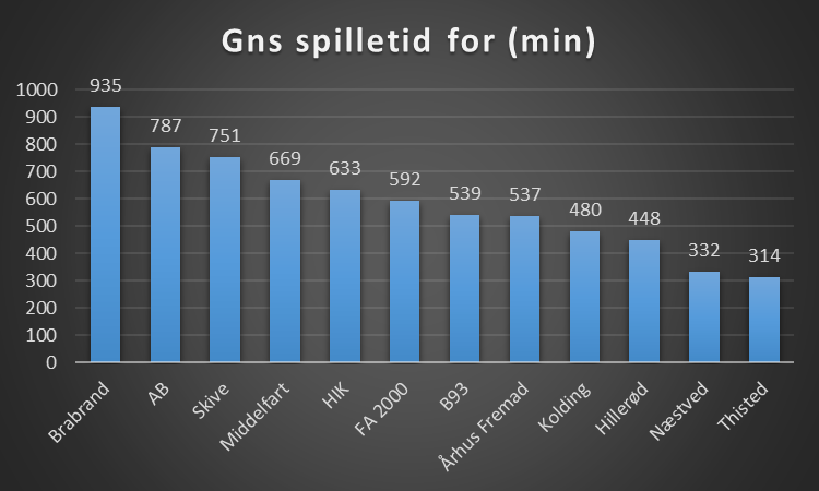 De to tophold er Næstved og Hillerød, her bliver der ikke givet så meget spilletid til de unge spillere, mens Brabrand er klubben der giver mindst spilletid.